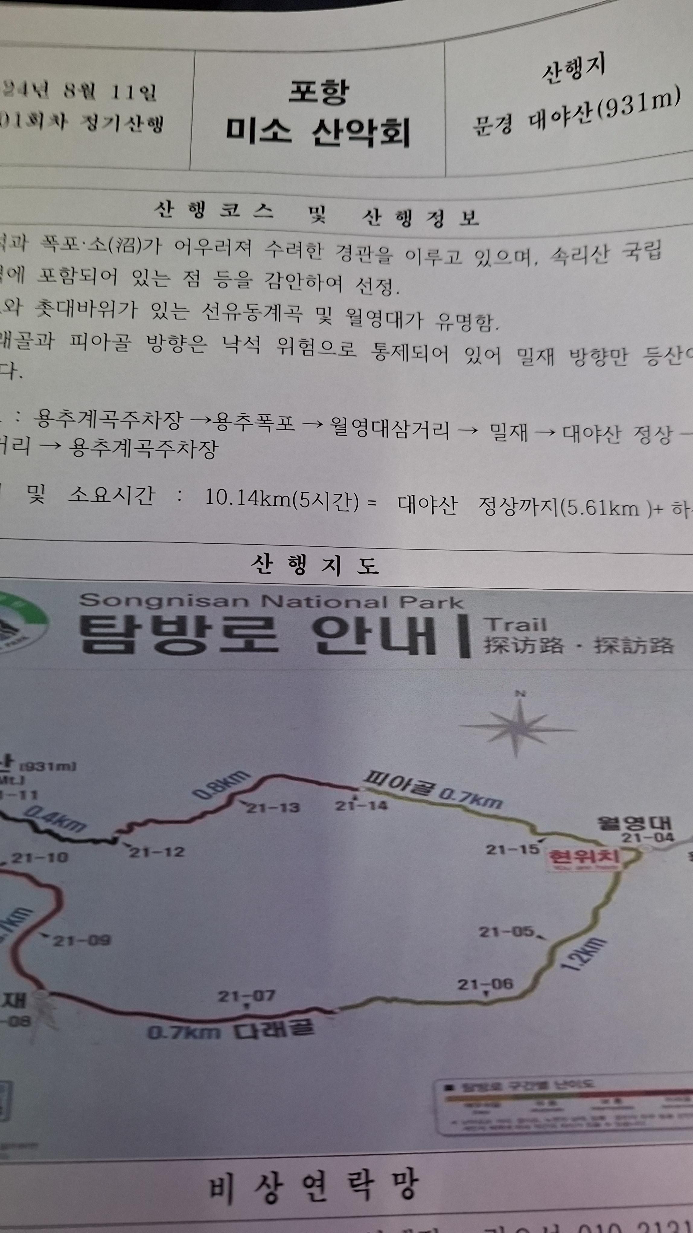 산행코스:용추계곡주차장(10:40~)-용추폭포-월영대삼거리-밀재-대야산(931m)-원점회귀(15;30~).