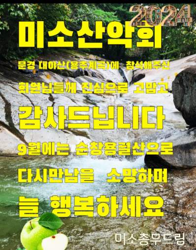미소산악회(산행대장님, 총무님,오락부장님).