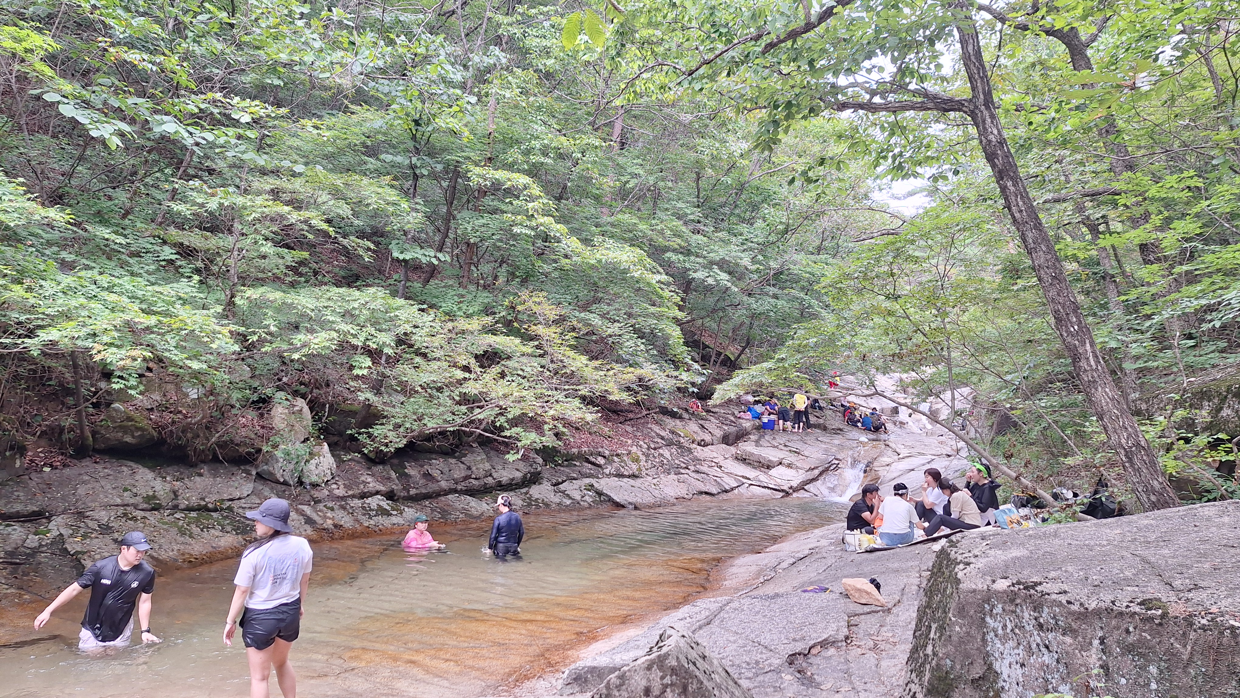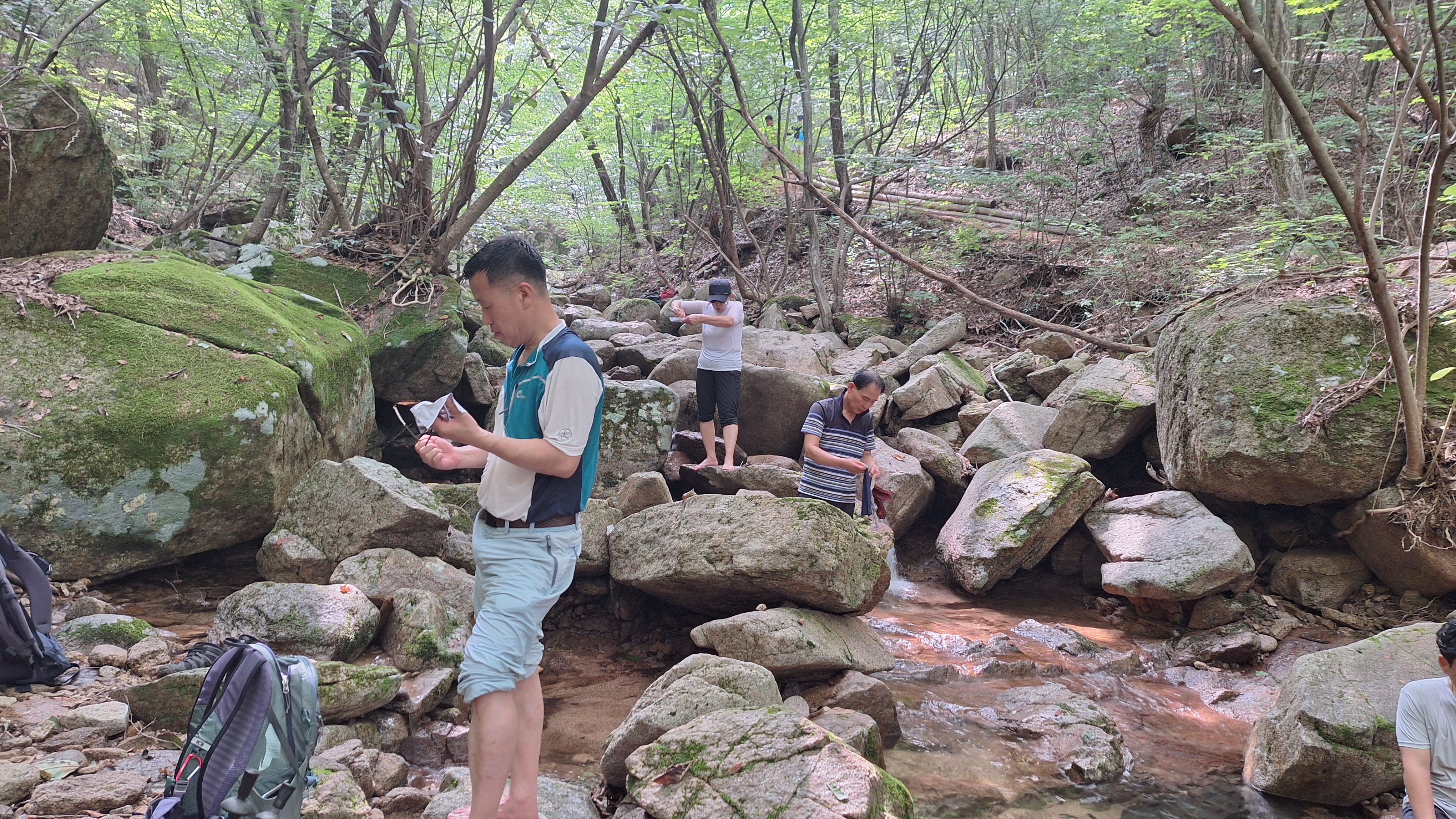 하산길에 시간쪼개어 계곡물(水)에 지친 몸과마음까지식히고...